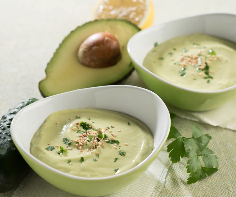Ponga en el vaso todos los ingredientes y triture 1 min/vel 10. Sirva inmediatamente, decorado con el perejil picado y las semillas de sésamo tostado o reserve en el frigorífico.