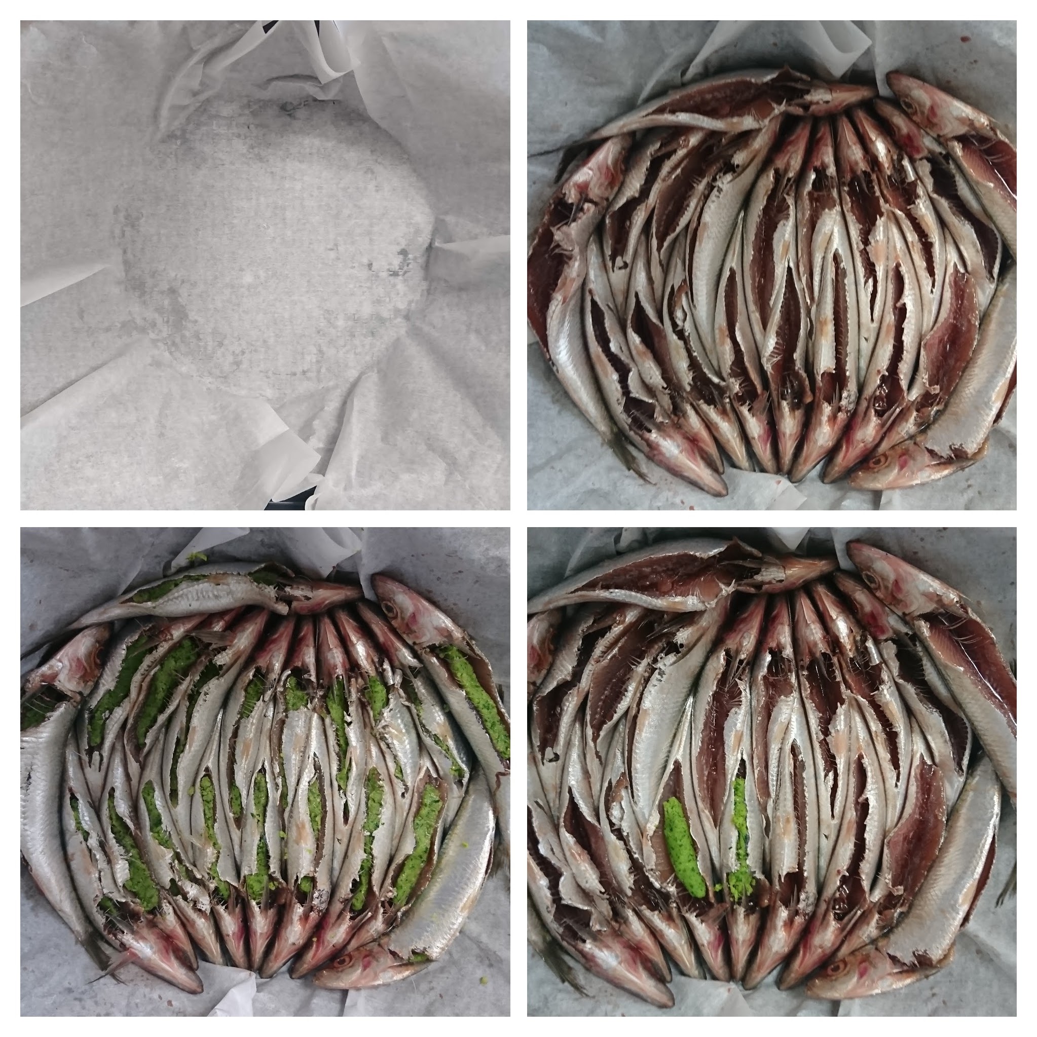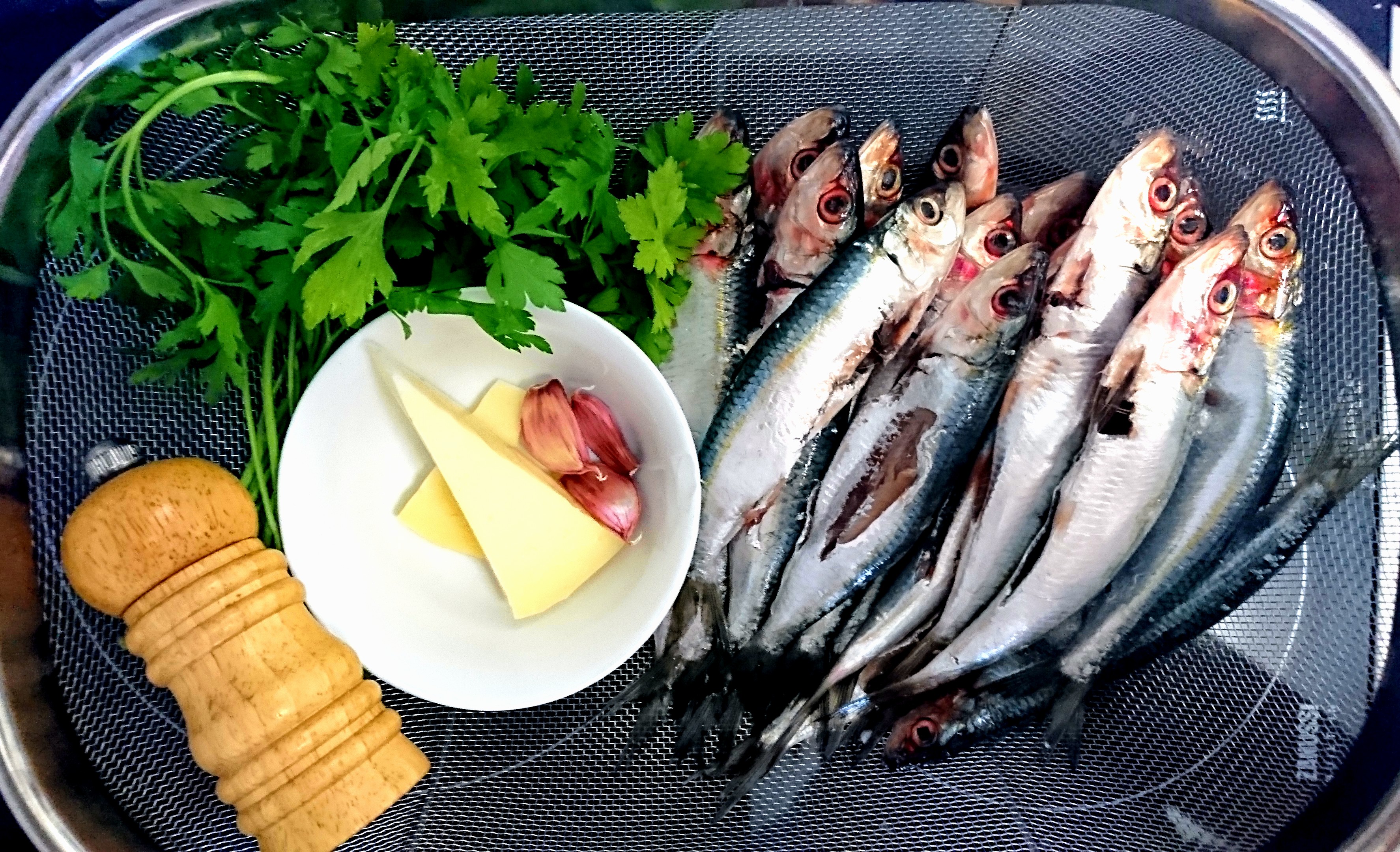 800 g (20 piezas) de sardinas frescas limpias de tripas y escamas.