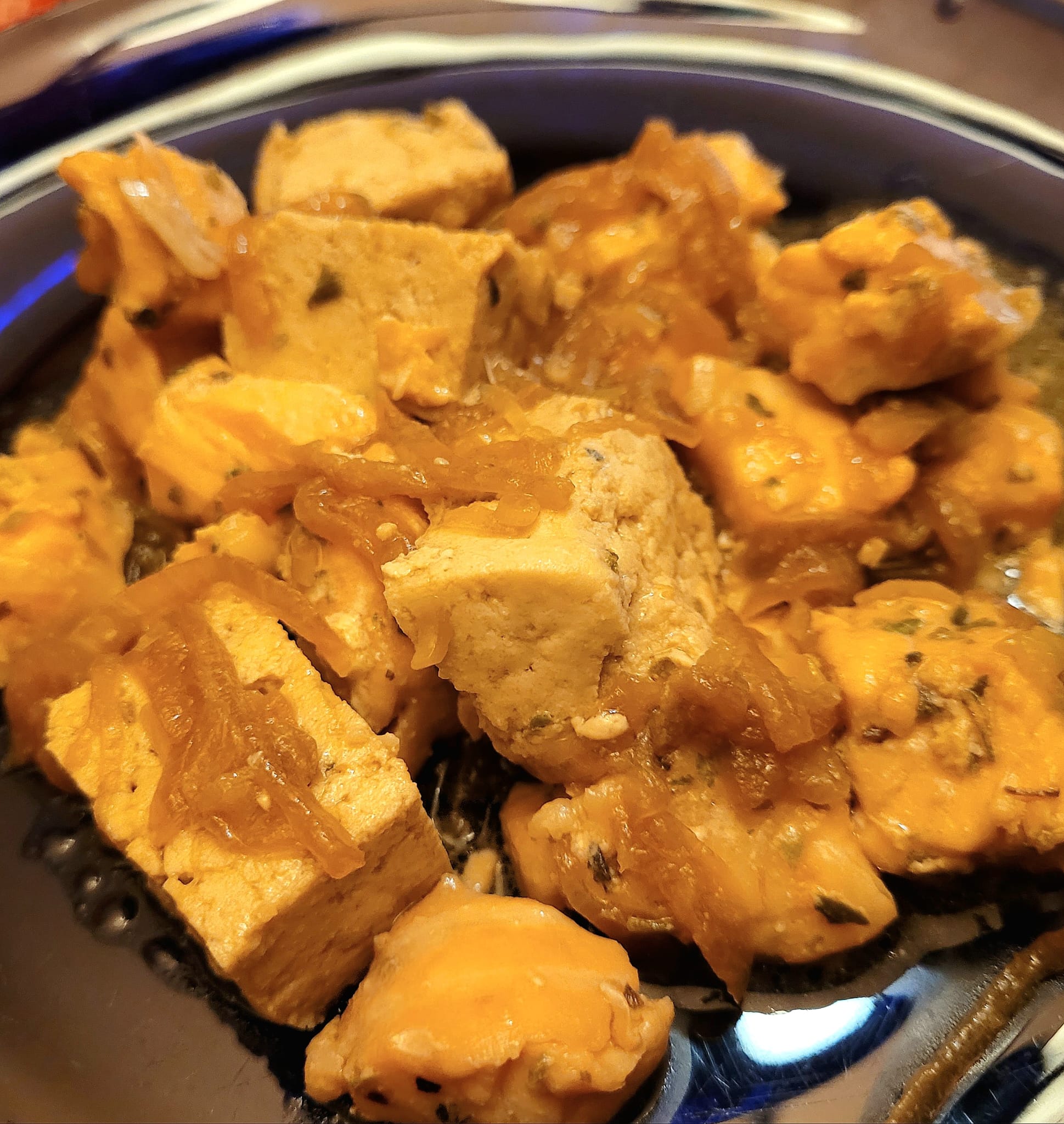 Traigo aquí, la muestra de todo esto con este delicioso Salmón con tofu marinados, en salsa de cebolla que es la versión para cuatro raciones de la receta de Cookidoo.