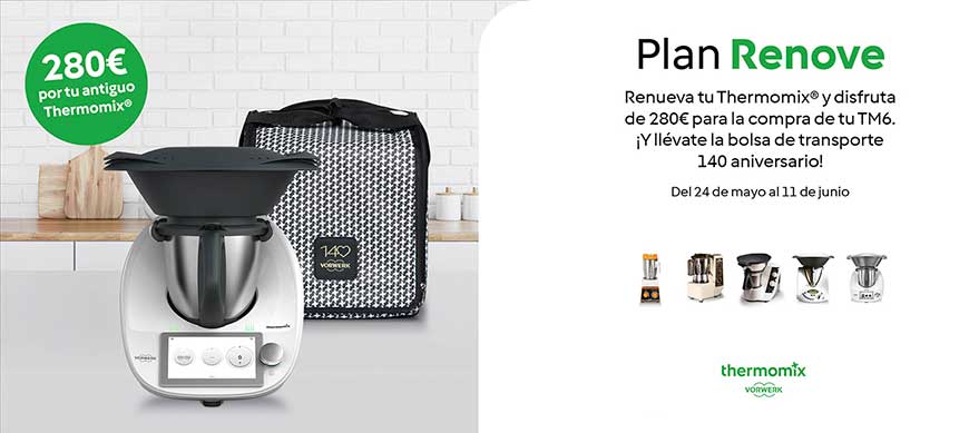 ¡Aprovecha el increíble Plan Renove de Thermomix® con una fabulosa bolsa de transporte 140 aniversario de regalo! Esta promoción exclusiva estará disponible desde hoy mismo hasta el 11 de junio. No te pierdas la oportunidad de renovar tu Thermomix®.