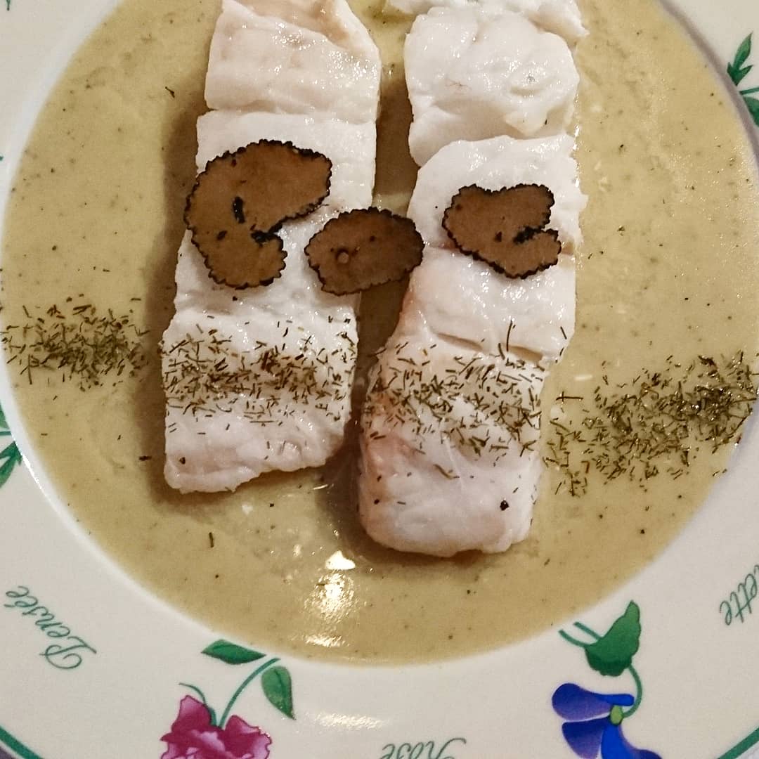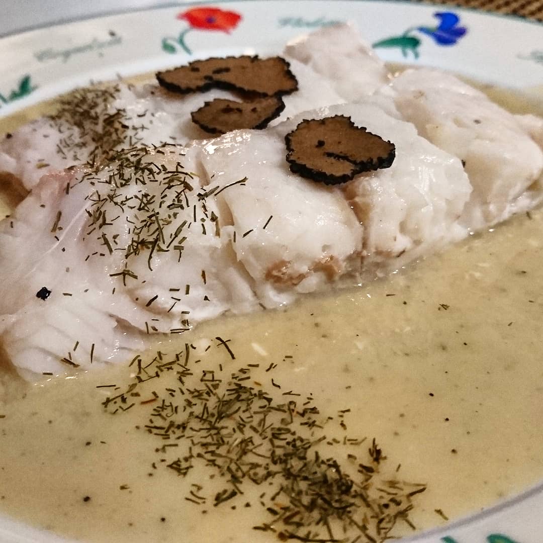 Bacalao Skrëi con salsa de trufa. Con Thermomix® tenemos el restaurante en casa.