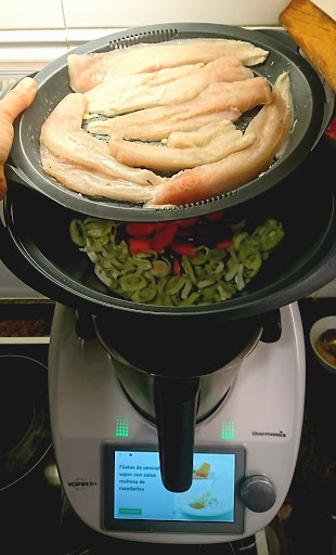 Filetes de pescado al vapor con salsa maltesa de mandarinas.¡Thermomix® al completo!