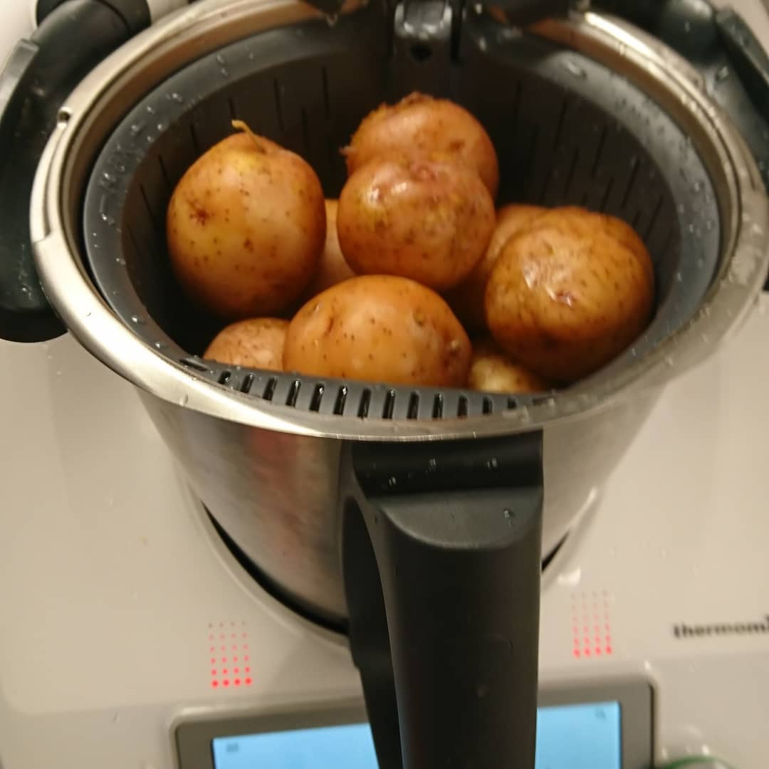 Creo que no he conocido aún a nadie que diga que no le gustan las patatas y si queda alguien que se resista a ellas ésta puede ser una gran receta para la conciliación, máximo sabor y mínimo trabajo, sacamos el varoma del armario y que no vuelva a quedarse allí porque es un imprescindible de nuestro Thermomix® y nos resuelve muchos platos además de, con un poquito de práctica, ahorrarnos tiempo que ganamos para nosotros.
