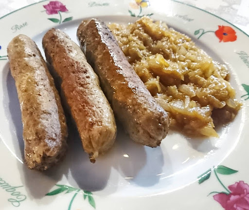 Estas "Salchichas alemanas" las he acompañado con cebolla dorada (receta en Cookidoo®) y ha que dado un plato sencillamente delicioso.