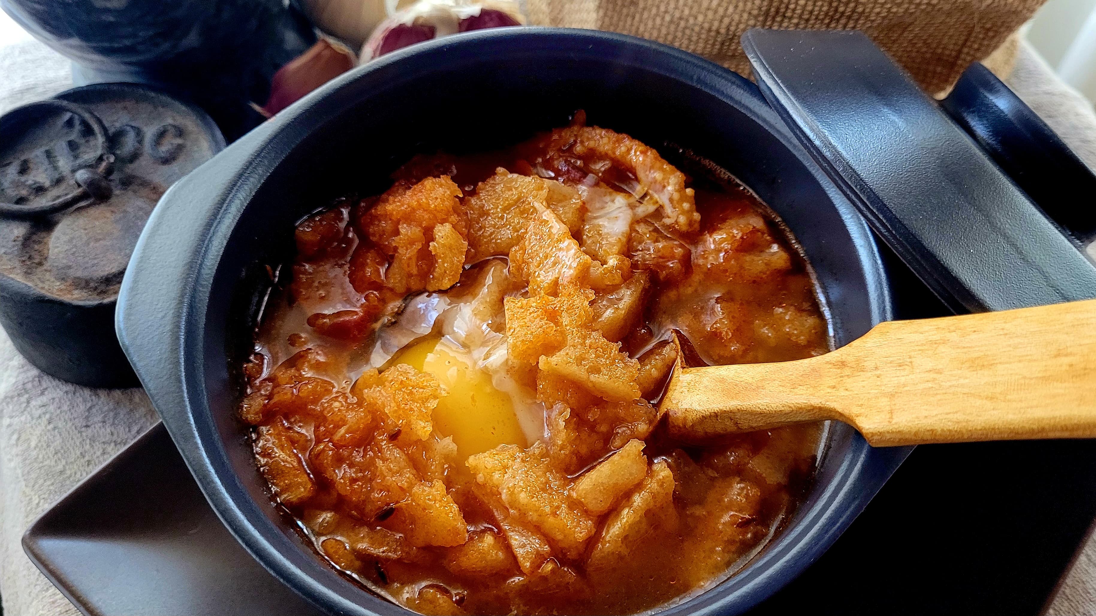 Y si hay un plato que requiere cuchara sí o sí ese es el de cualquiera de las sopas que tan abundantes son en el panorama gastronómico del mundo entero, así que vamos a por una de ellas, probablemente la más tradicional y socorrida de nuestro acervo coquinario y que, cómo no, presenta tantas variedades como hogares en las que se elabora... sin embargo, ésta ha adquirido nombre propio: la sopa castellana es la versión castellano-leonesa de la tan ibérica sopa de ajo y he decidido traerla aquí porque, además de encantarnos en casa, era una de las sopas favoritas de mi padre, que fue quien me enseñó a cocinar.