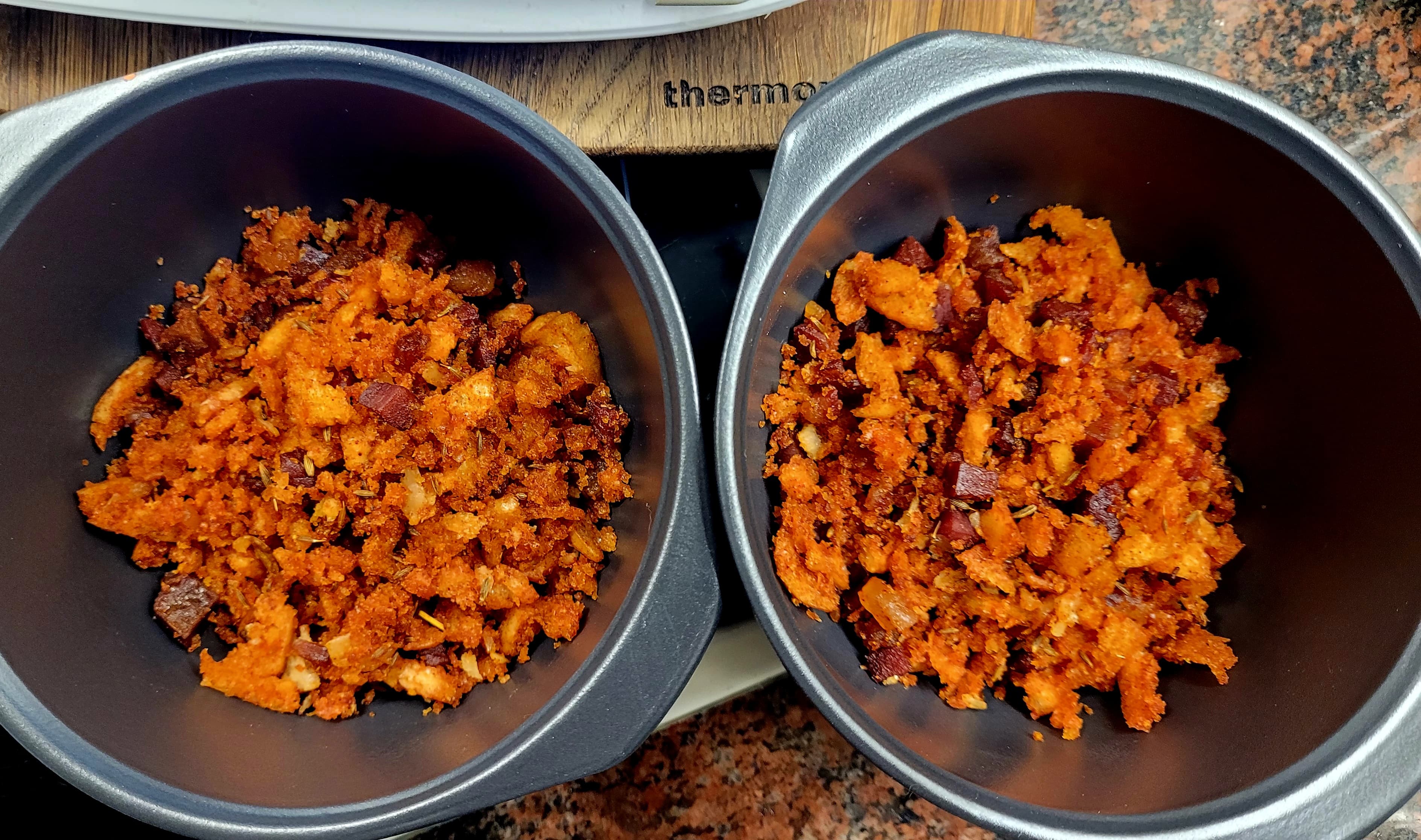 Adaptar la receta al Thermomix es un paso más en la pervivencia de esta sopa en las cocinas actuales, y es de las cosas que más me gusta hacer, porque la tradición no tiene que estar reñida con la tecnología y todo lo que ésta haga por mantener viva a aquélla es otra forma de cuidar nuestra memoria cultural, saber de dónde venimos para vislumbrar hacia dónde vamos. Nada como alimentarse de forma sana y económica, disfrutar de los sabores de siempre y que todos podamos hacerlo.