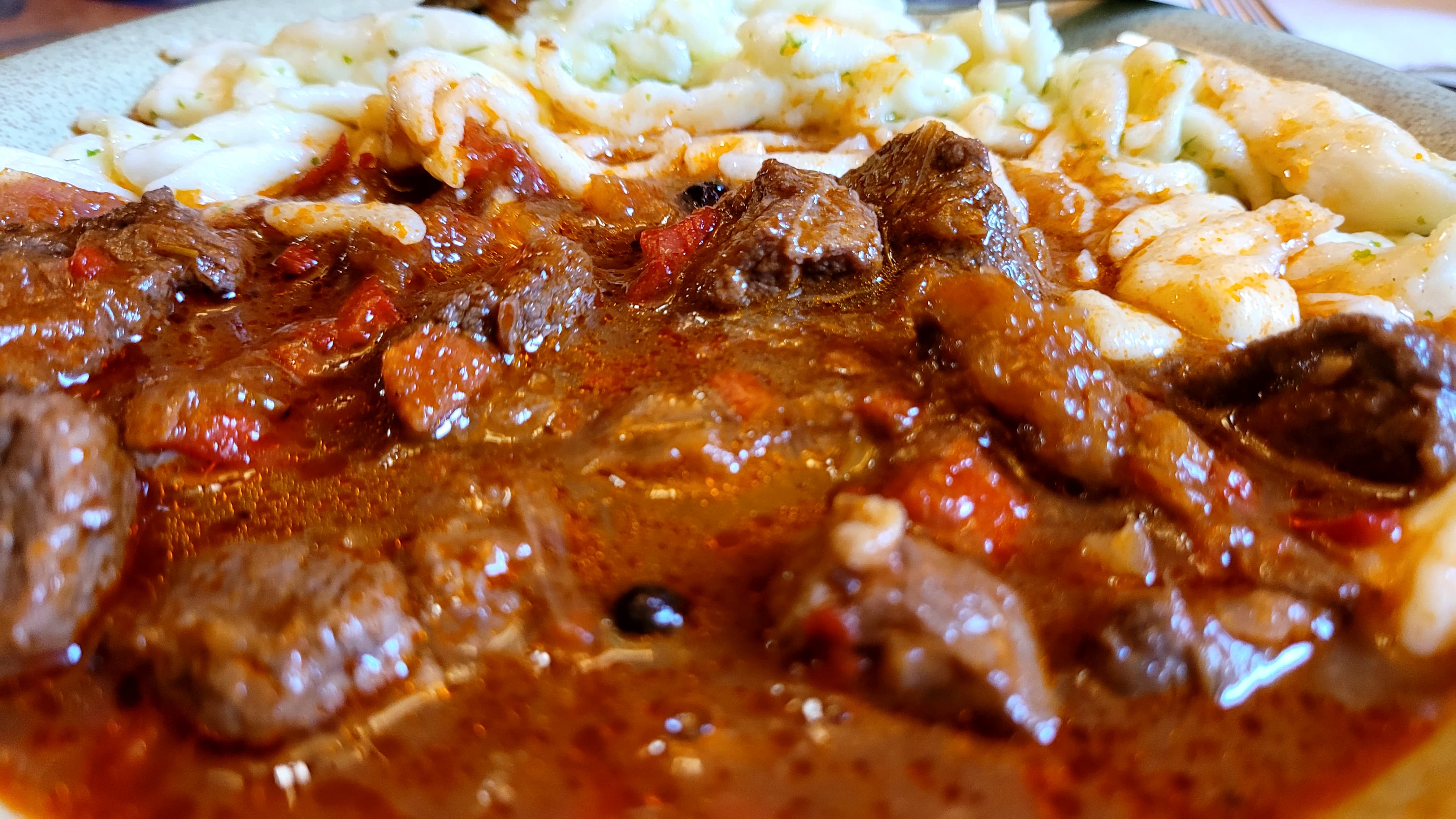 ¿Un guiso de carne puede ser plato de cuchara? pues resulta que sí y que uno de esos platos tan ricos es uno de los más extendidos por nuestro continente, el goulash. Es un guiso de carne que se diferencia del estofado en que es más especiado y se espesa, si se quiere, con la reducción de la salsa, sin emplear harinas ni crema de leche como es en el caso de los diferentes estofados. El goulash puede quedar, según el gusto de cada cual, más líquido (Sopa gulash), además tenemos la opción, parece que es algo que se ha puesto muy de moda, de servirlo en un cuenco de pan, vaciando un pan redondo individual que lo contenga, o más espeso reduciendo la salsa.