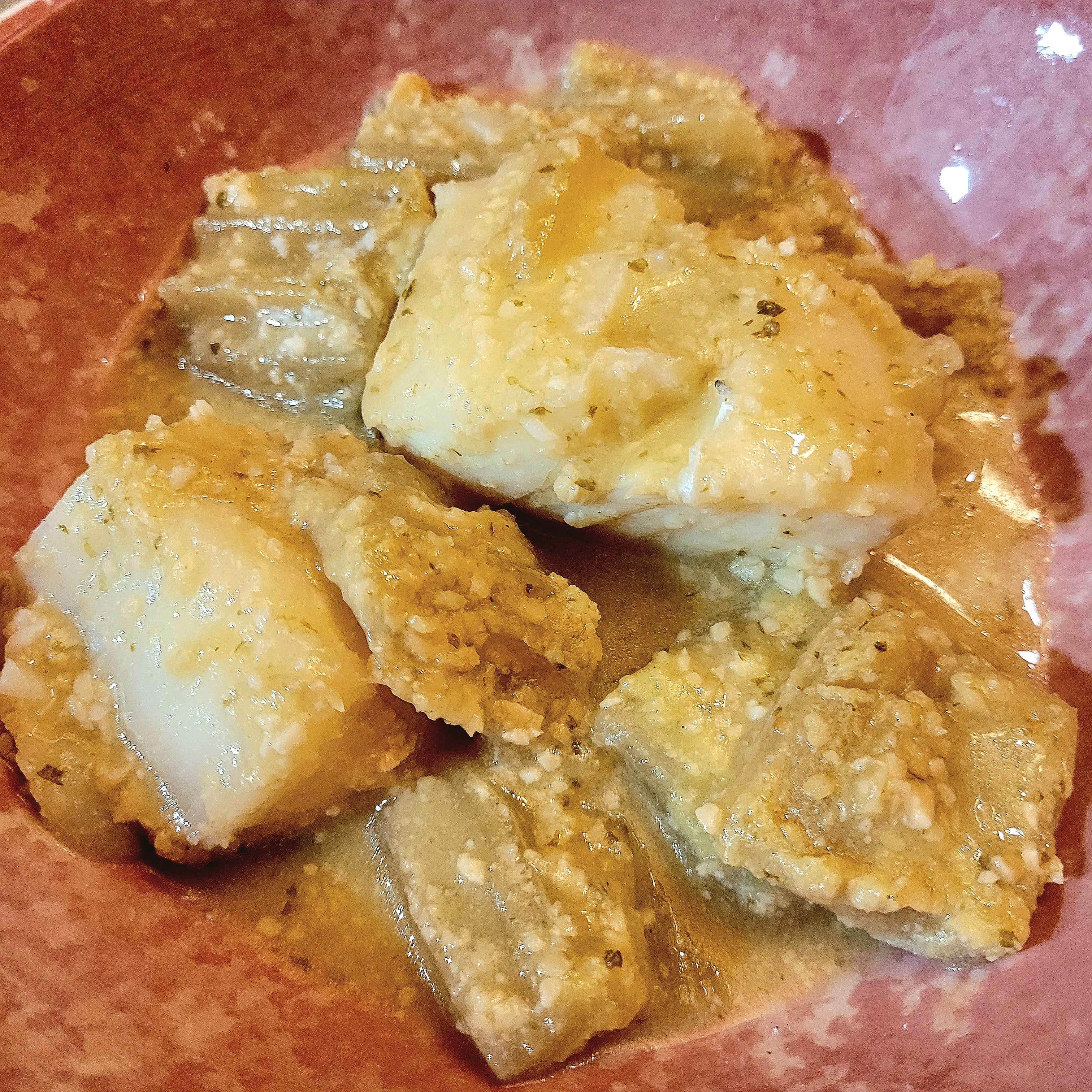 Cardos con bacalao en salsa de almendras. Tradición con Thermomix.