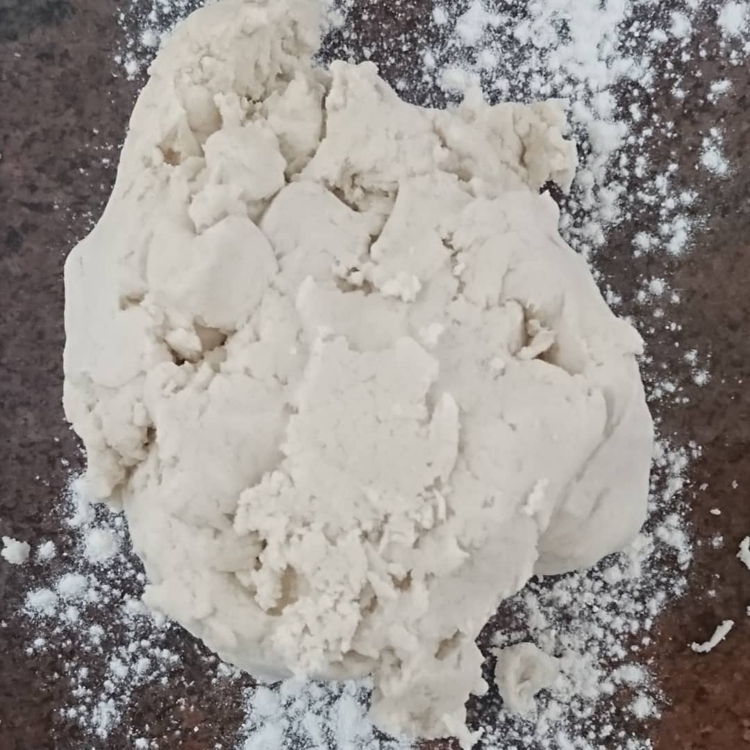 4. Sacamos del vaso a una superficie enharinada y amasamos un poco a mano hasta formar una bola elástica.