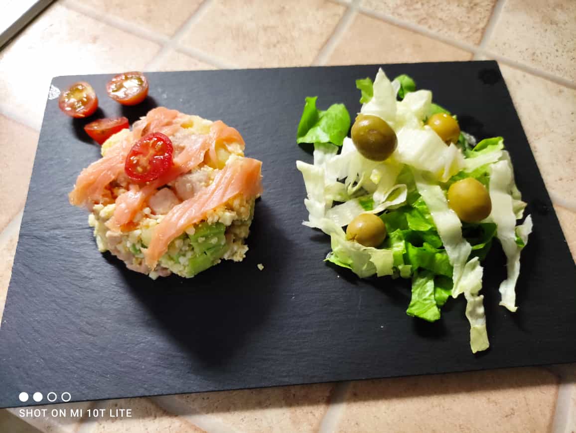 Ensalada de patata con salmón y aguacate. Os dejo enlace de cookidoo para que podáis hacerla sin problema.