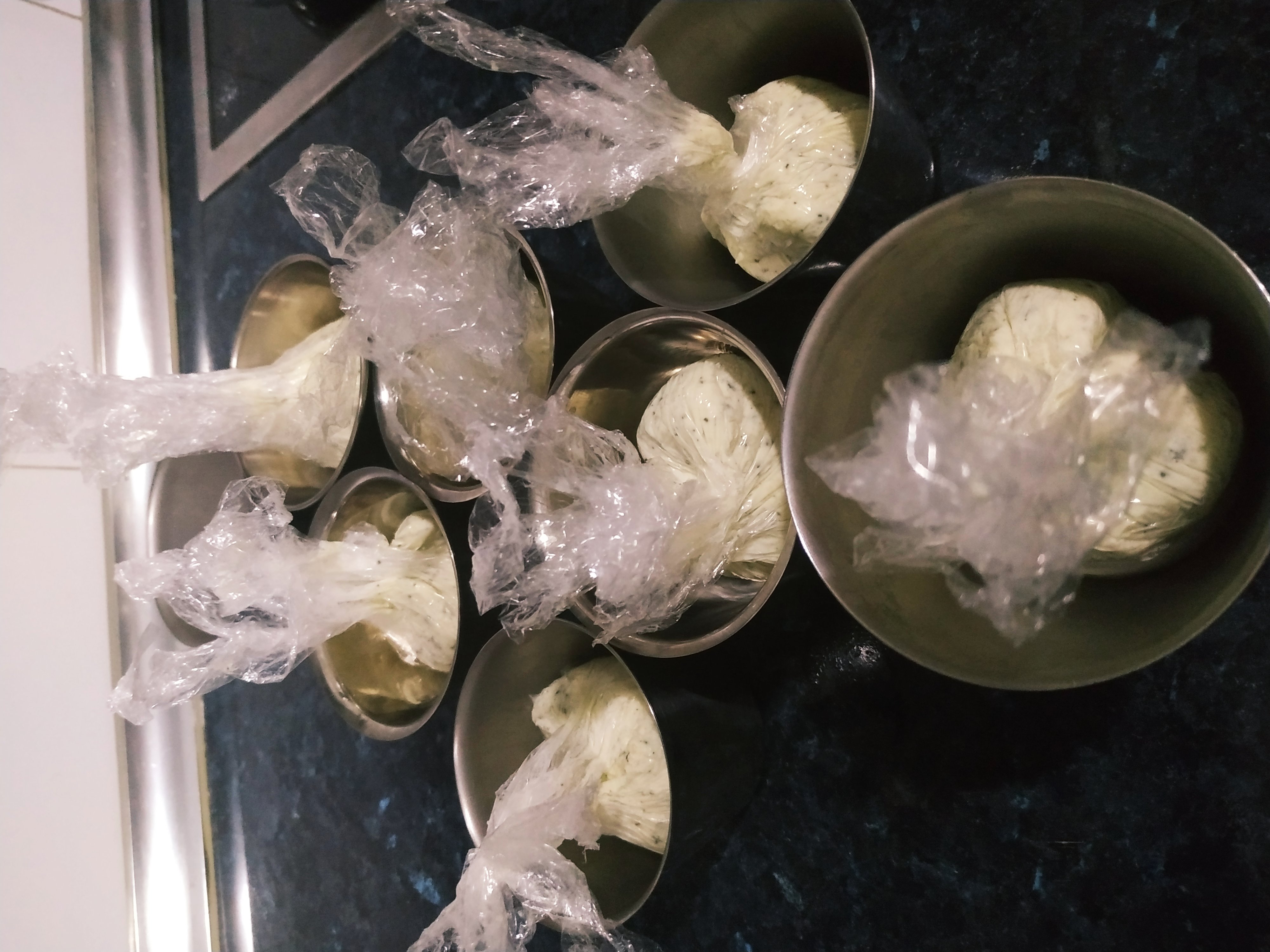 Forre el interior de vasitos o flaneras con film transparente ( depende del tamaño que os guste a mi me salen de 8 a 10 bolitas.