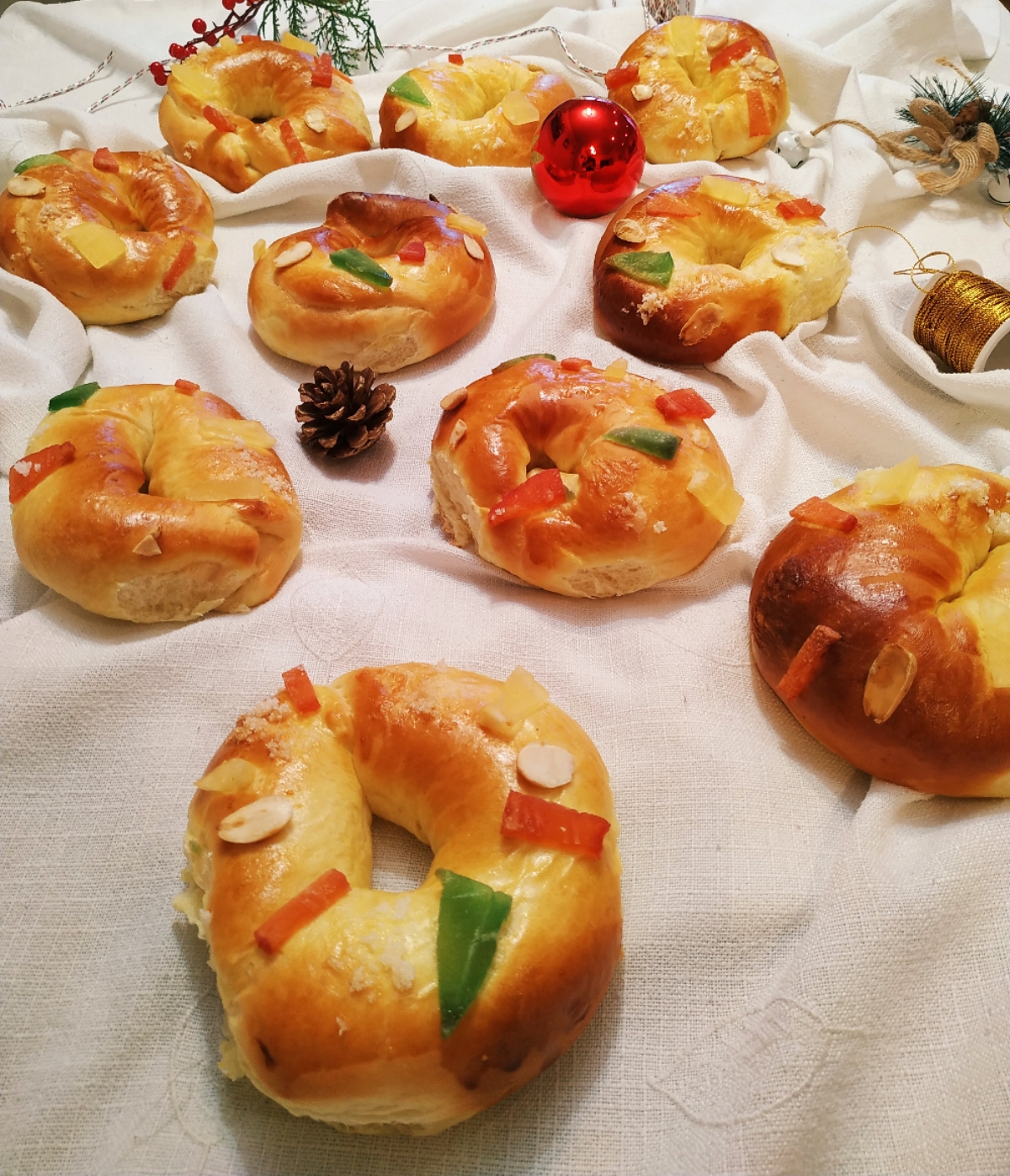 Este año es el primero que hago estos roscones. Todos los años nos solemos juntar con la familia el día de Reyes a comer y tomar el roscón de Reyes, pero por la situación actual eso no es posible. Pero nuestra tradición y la ilusión de los peques de la casa tienen que continuar y nos hemos adaptado a la situación. Así que he decidido llevar los roscones a casa de la familia y con el relleno a gusto de cada uno. Al ser roscones individuales es más fácil transportarlos hasta donde estén nuestros familiares y amigos. Os iré contando algunos truquillos que he aprendido estos días gracias a grandes reposteros, la receta es de Cookidoo en la colección roscones , echarle un vistazo que están todos tremendamente deliciosos, los he preparado con algunas variaciones sobretodo por el tiempo de levado. Felices Reyes!