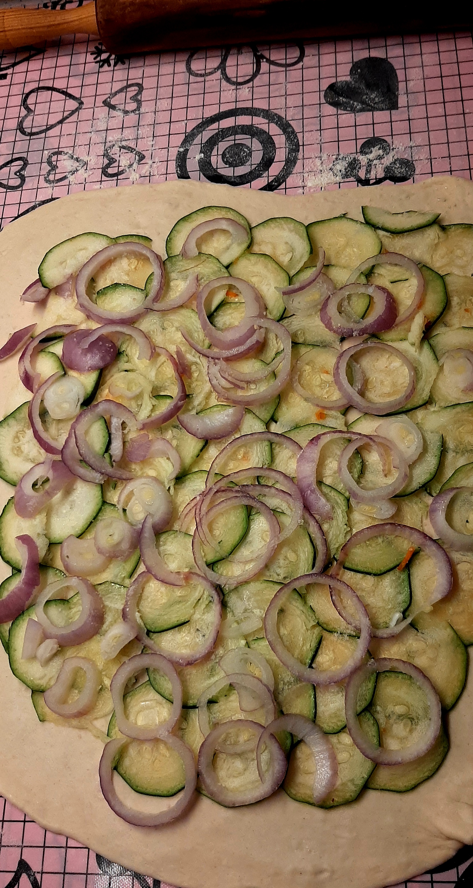 También tenía un calabacín cortado en rodajas muy finas, las cuales las habíamos cortado para otra receta con el nuevo cortador de Thermomix®