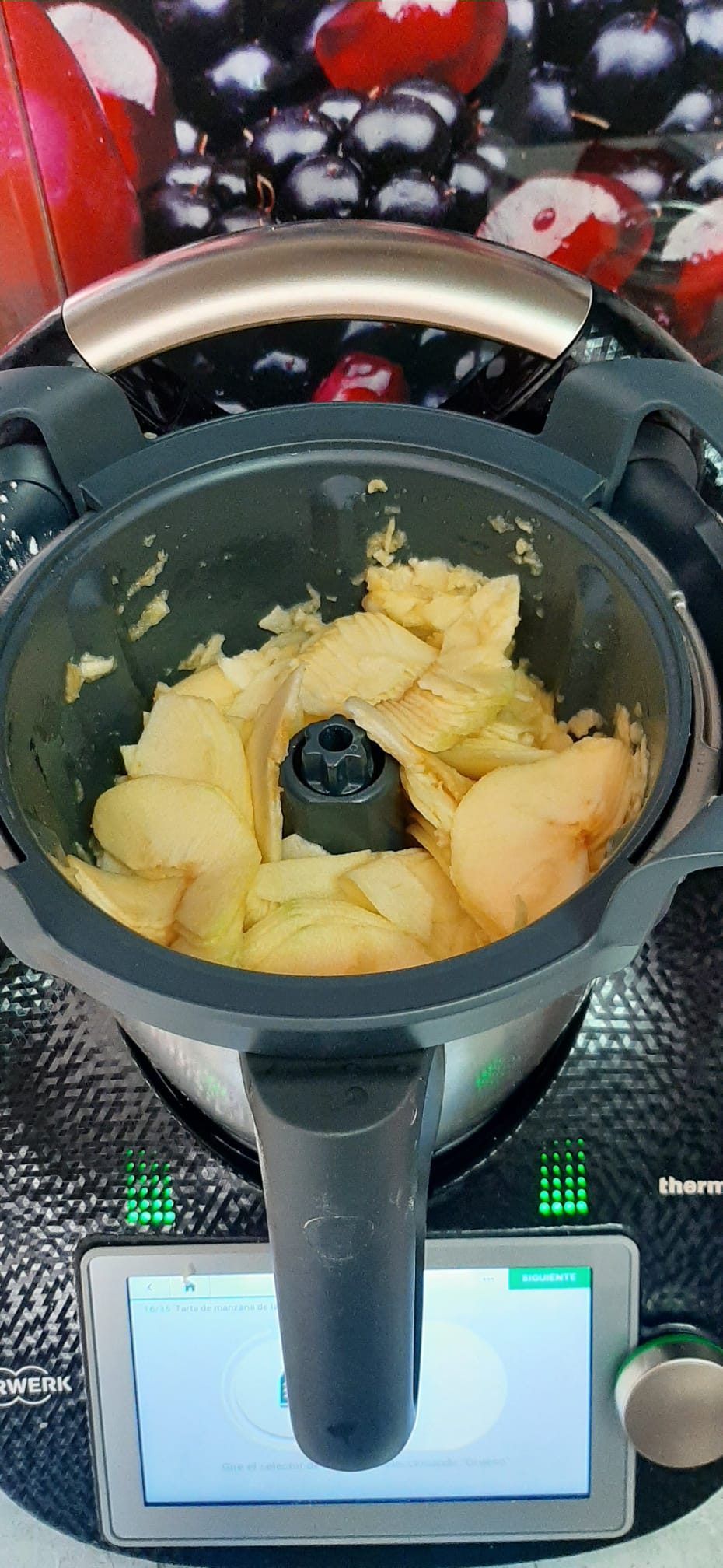Y que mejor que preparar esta tarta con nuestro Thermomix® y lo mejor de todo lo fácil y rápido que ha sido prepararla con el accesorio cortador de Thermomix®, el cual nos ha ayudado a laminar las manzanas en segundos y realizando unos cortes muy finos.
