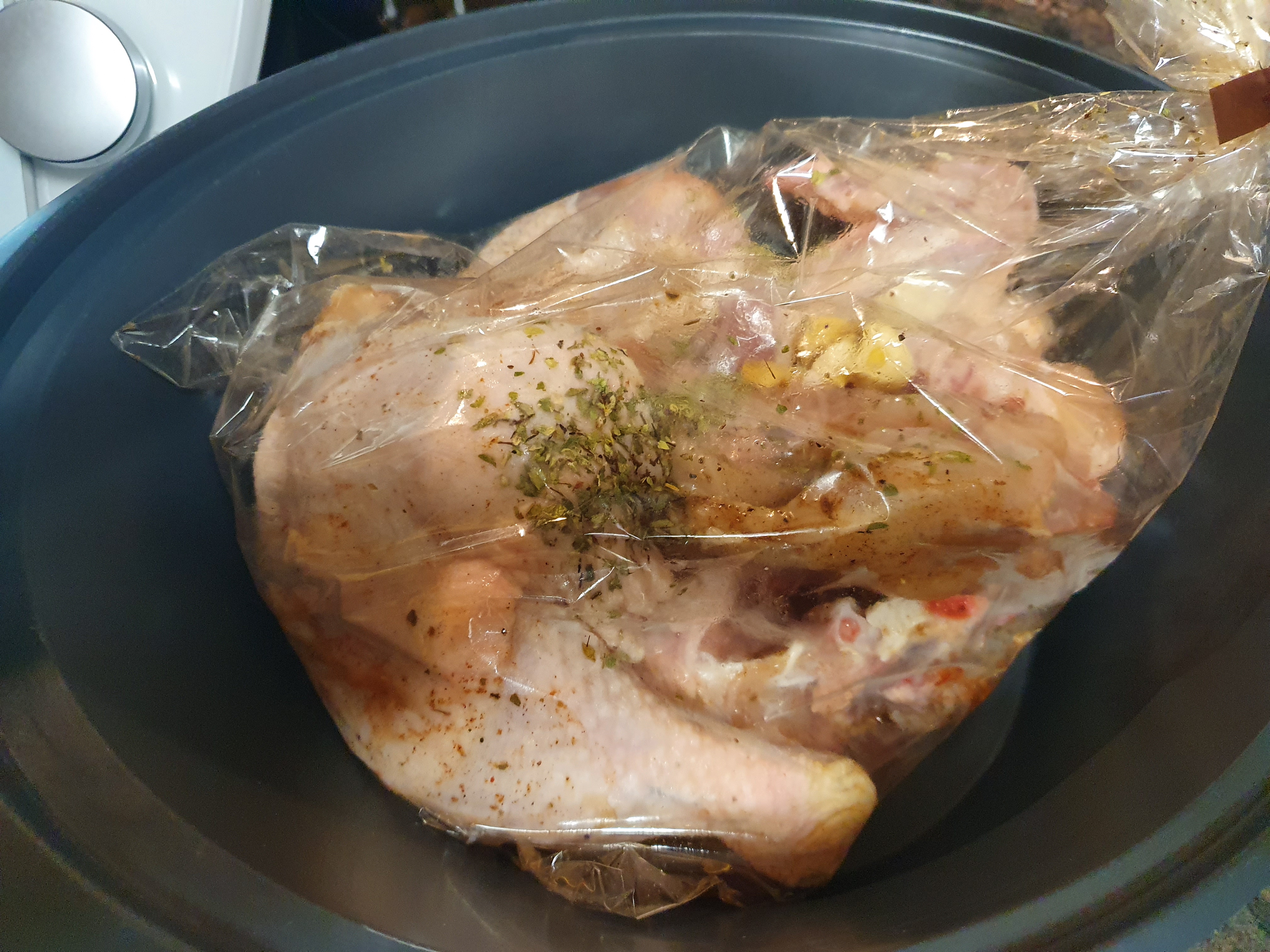 Colocamos el pollo en una bolsa de coción al horno