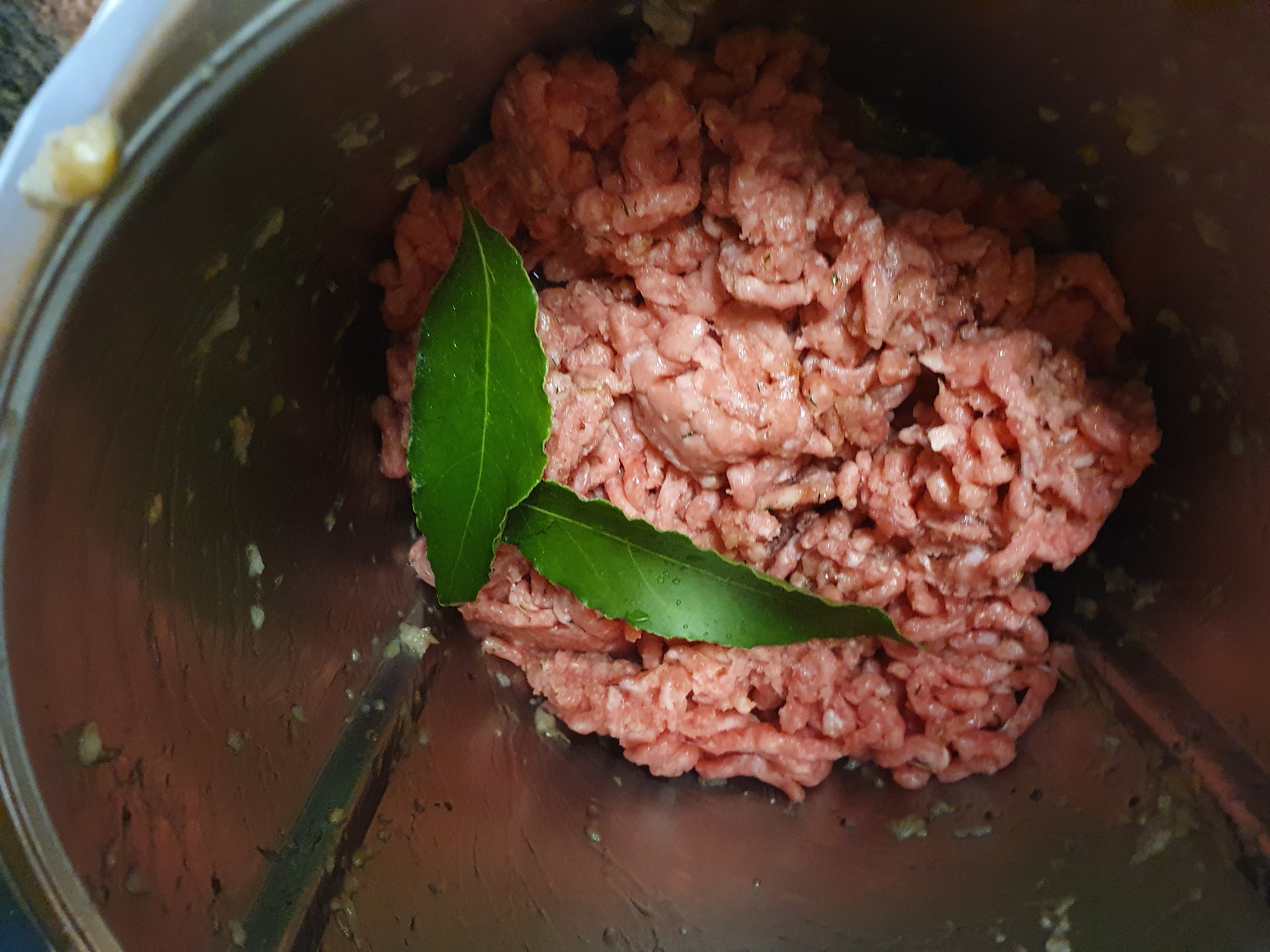 Agregue la carne de ternera y la de cerdo, la sal, la pimienta, el laurel y el coñac. Rehogue 15 min/120°/vel 1.