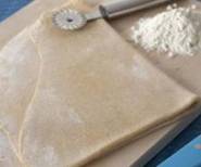 Sacamos la masa en una superficie ligeramente enharinada y forme placas muy finas con el rodillo de cocina.
