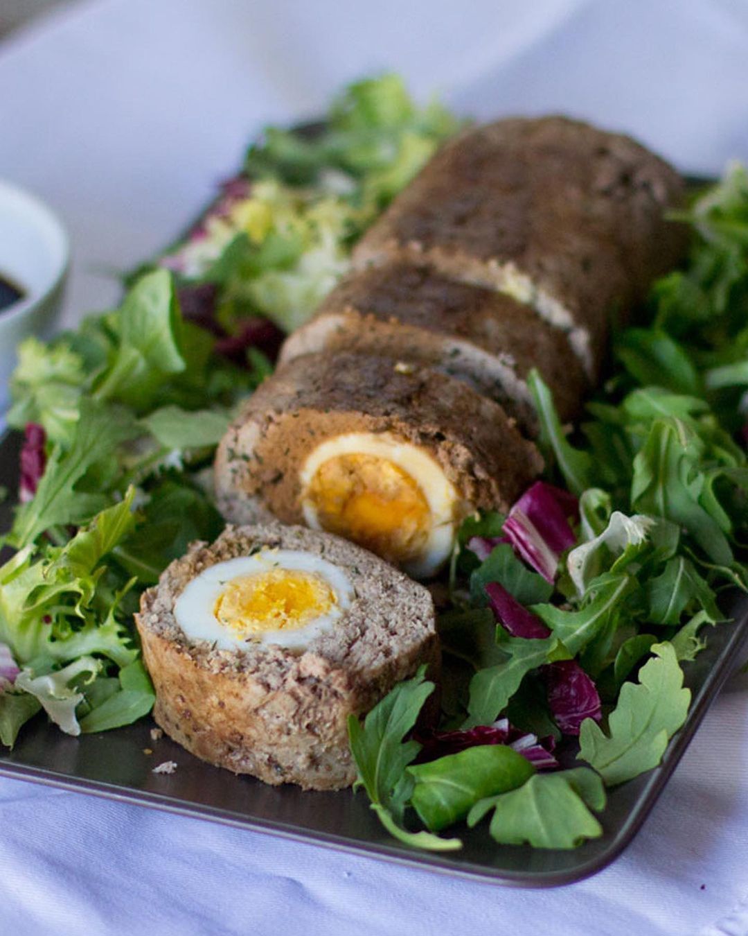 rollo de carne especiado relleno se puede comer tanto caliente como templado o frío y está más rico de un día para