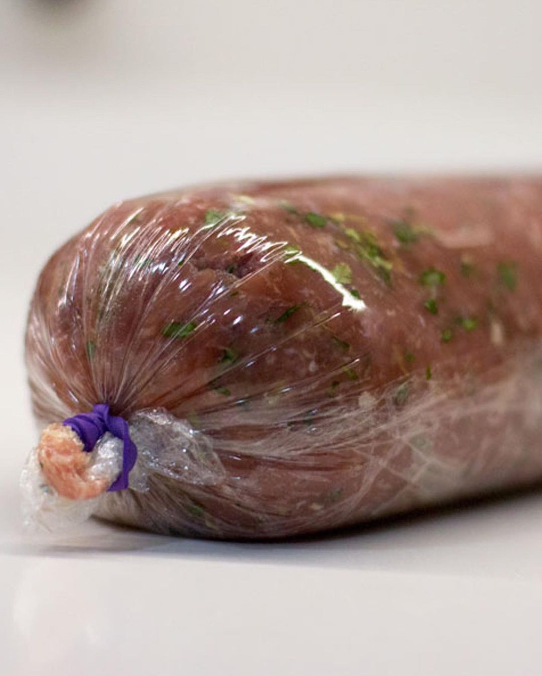 ➡️ Con ayuda del propio papel film transparente ve dando forma al rollo. Ata los extremos con unas gomas elásticas.