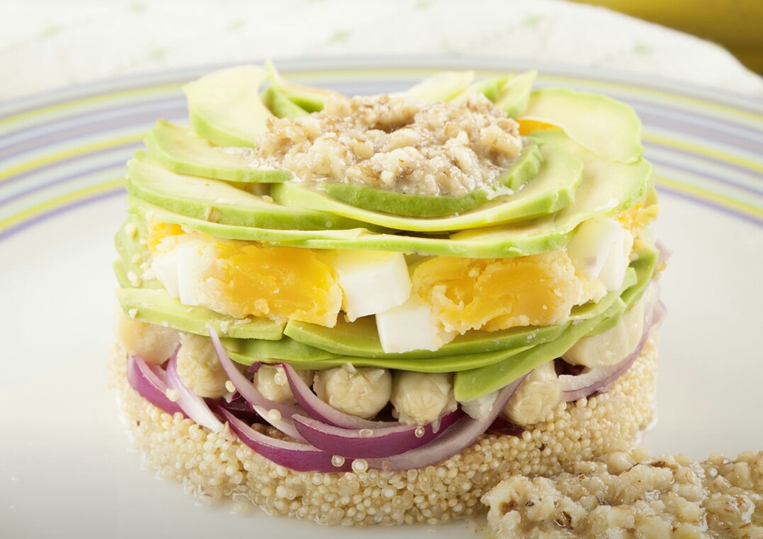 En esta ensalada esta todo lo que necesitamos para completar una cena 100% saludable, tiene verduras, proteínas e hidratos de carbono, existentes en la quinoa ademas de ser rica en fibra, aminoácidos esenciales y ser apta para celiacos