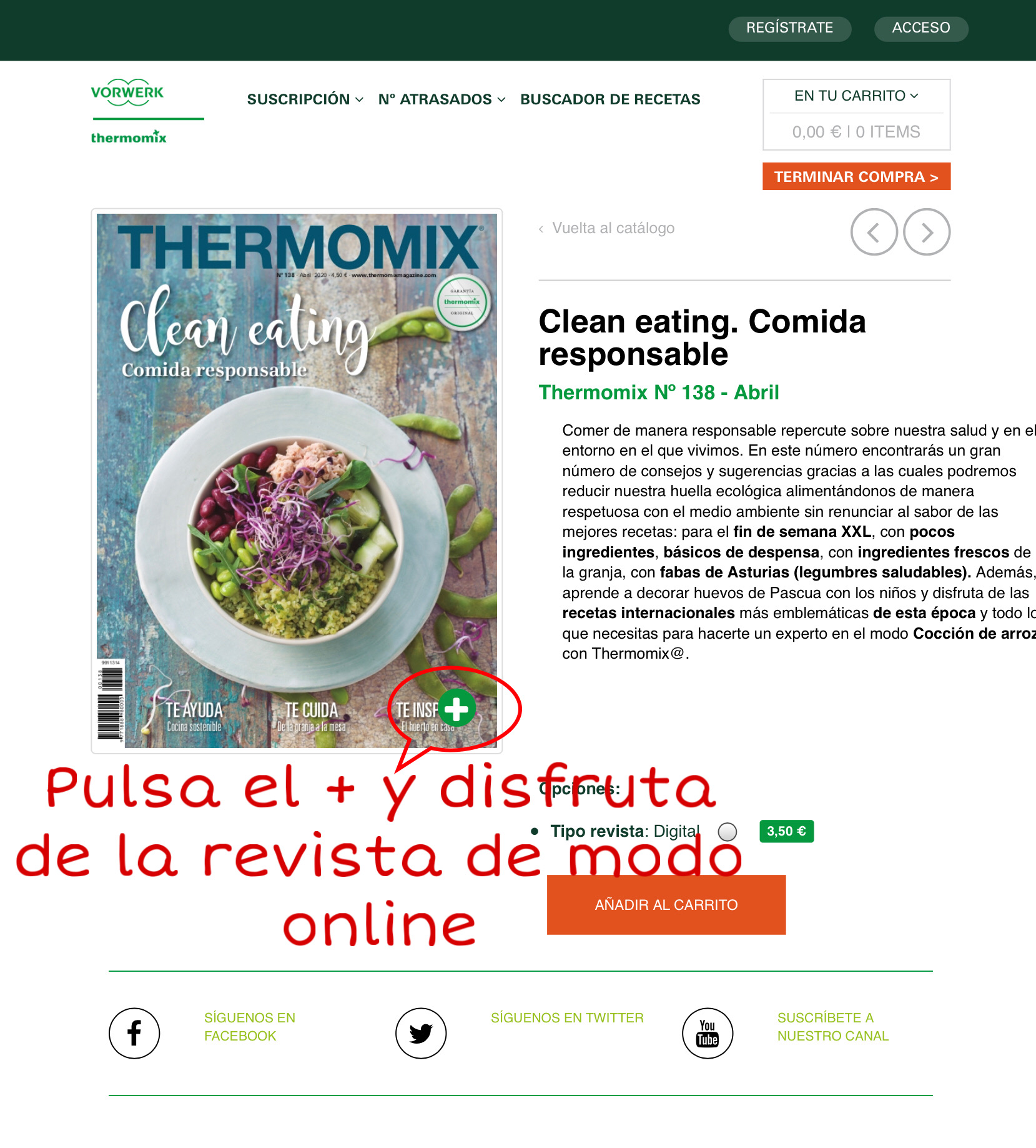 Y para eso nos facilita poder verla de modo online, puedes acceder a ella en este enlace www.thermomixmagazine.com pulsa y accede a la plataforma de venta online de la revista magazine, desde ahí ademas de poder comprarla si queréis también vamos a poder verla al completo de manera online.