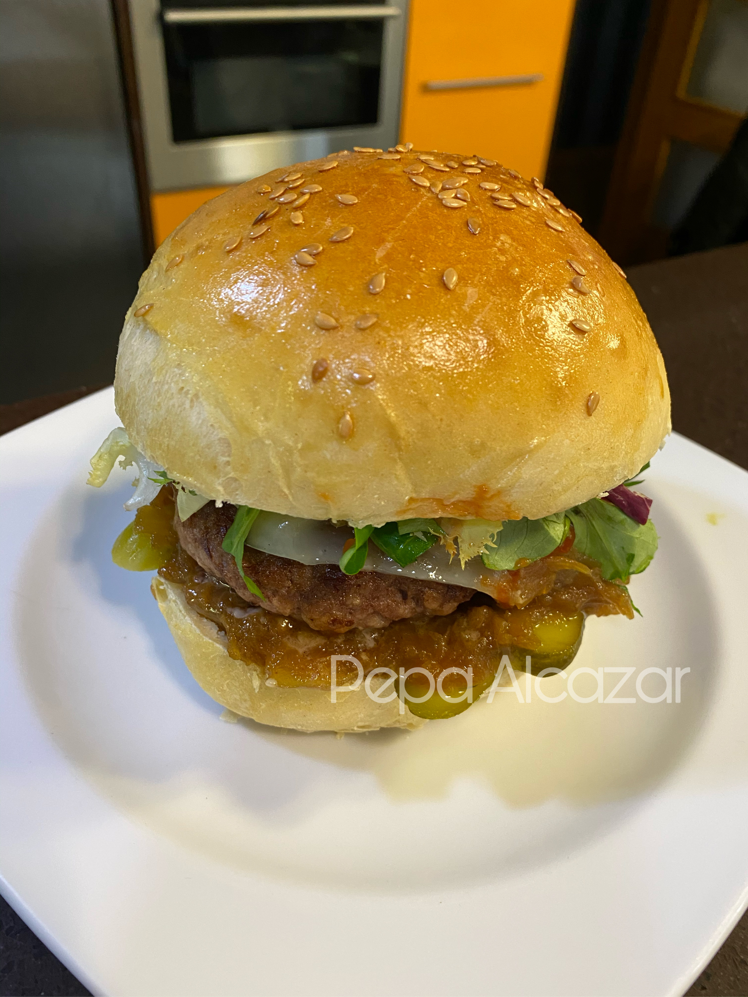 Anoche para cenar disfrutamos de una Hamburguesa con pan hecho en casa y con cebolla caramelizada en alta temperatura. Que bien lo pasamos haciendo los panecillos con los niños, pintándolos de huevo, espolvoreando las semillas...... una tarde muy divertida cocinando y elaborando!!!! Probadlo lo vais disfrutar!!