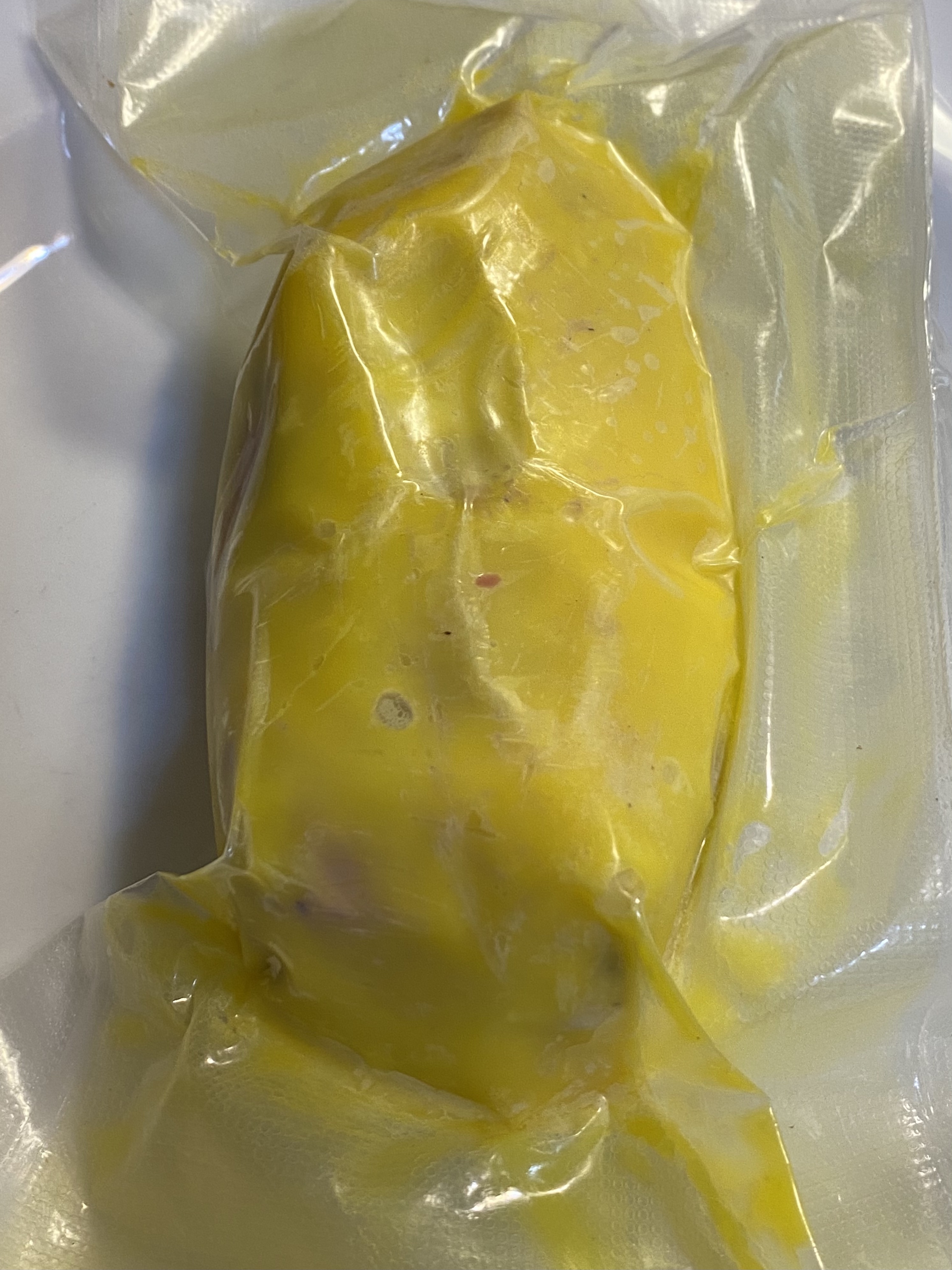 Coloque el foie gras en una hoja de film transparente, luego enrolle en una salchicha y cierre los extremos. Yo aquí divido el foie en dos partes y hago la operación con dos rollos para tener para las dos noches. Coloque la película envuelta en una bolsa de vacío o dos, luego cree un vacío de aire y selle la bolsa con una máquina de vacío.