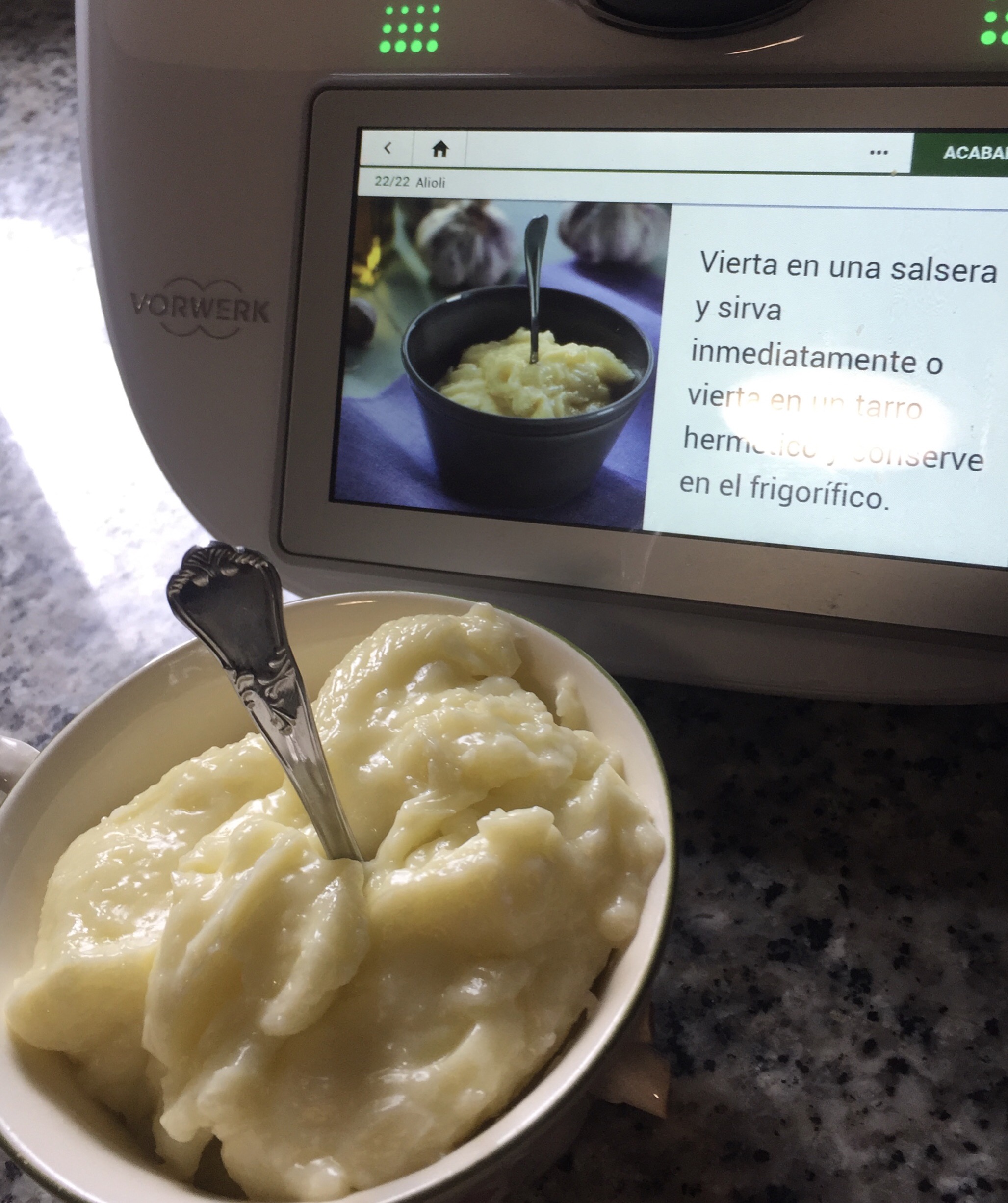 Pero gracias a Thermomix y a su plataforma Cookidoo, podremos ser hacer nuestro Alioli sin fallos y de un modo sencillo y cómodo, en su cocina guiada.
