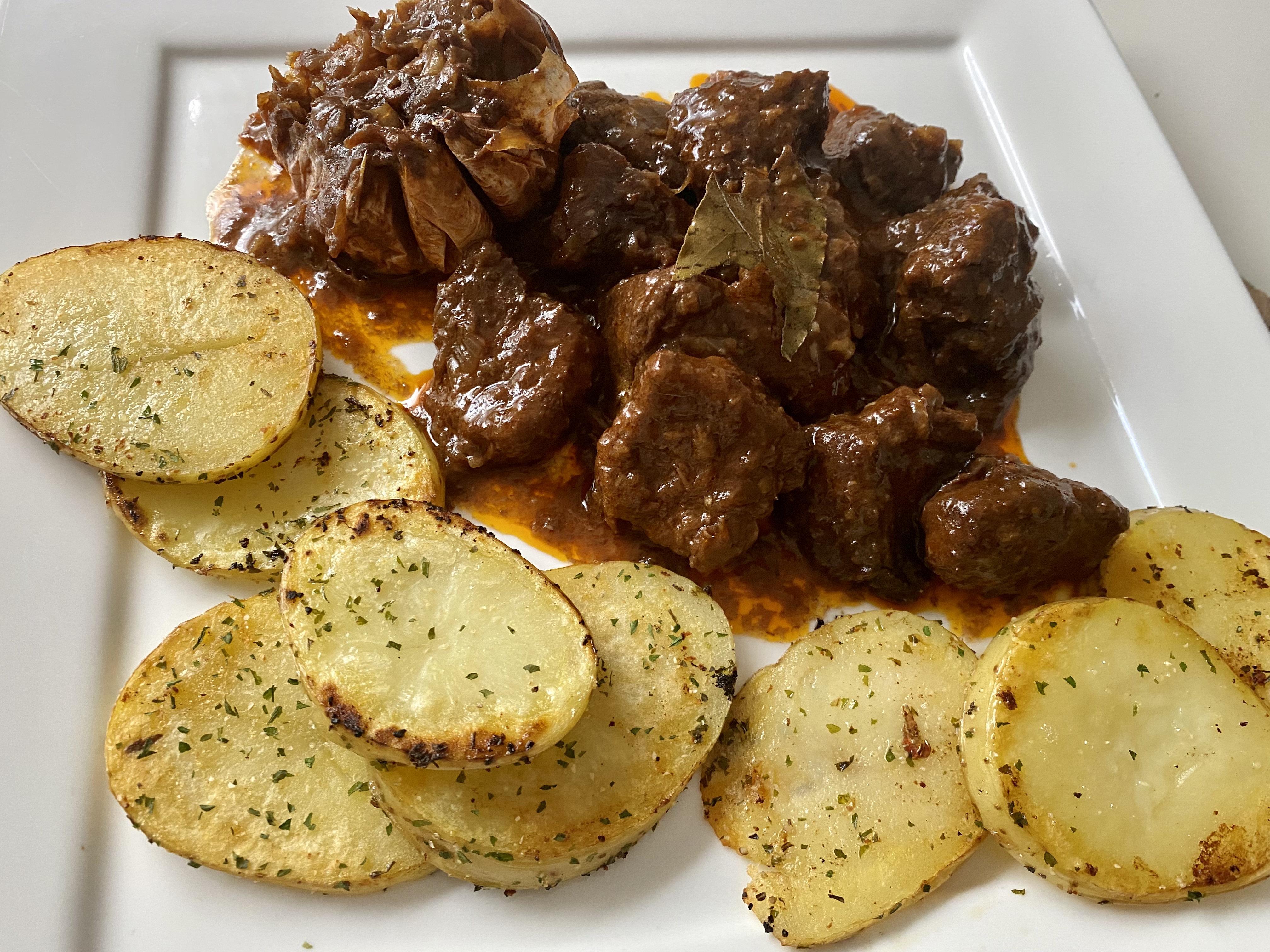 AGUJA DE TERNERA ESTOFADA CON PATATAS A LAS HIERBAS