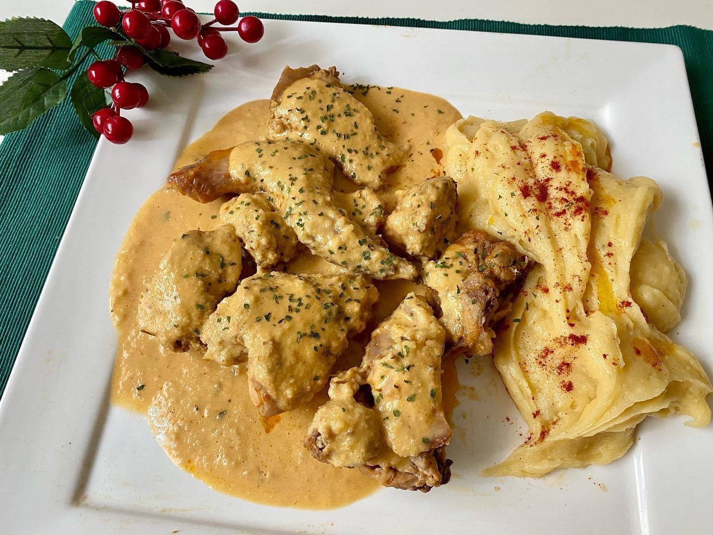 CONEJO CON SALSA DE ALMENDRAS Y PATATAS AL VAPOR