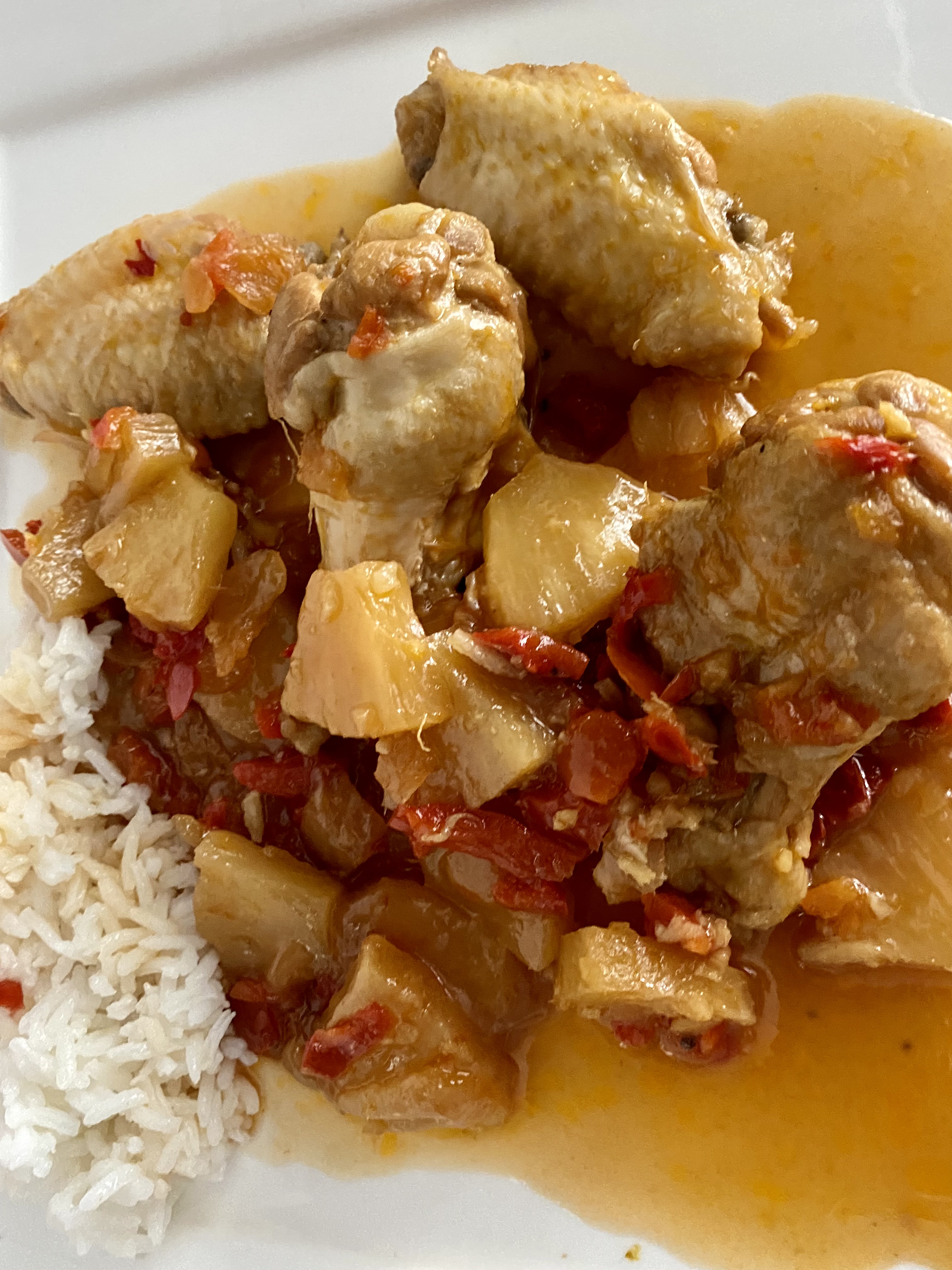 Súper receta!!! La preparamos en un taller y me encanto ! Podéis hacerla con lomo de cerdo o como en este caso alitas de pollo . Receta sorprendente en sabor y plato completo , ya que se pone 200 gr de arroz en el Varoma , si si en nuestra vaporera , esta vez otras veces convertida en horno de vapor ! El arroz queda fabuloso, una guarnición perfecta para este plato .