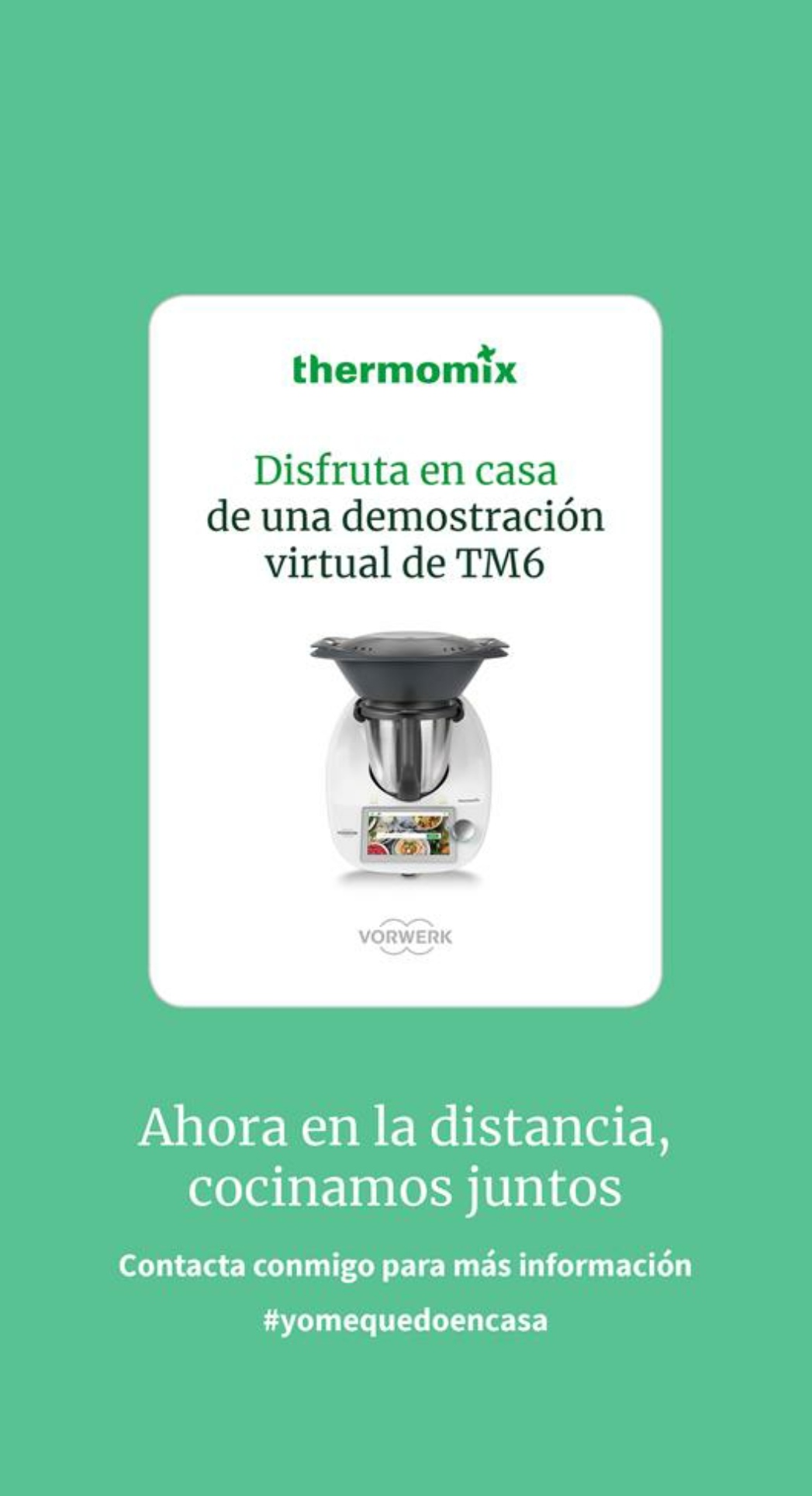 Me preguntáis muchos y seguís vendiendo ? Y tanto que si !! Ahora que estamos en casa confinados es el mejor momento para sacarle partido , y conmigo todo el día disponle para ayudaros . Y como enseñamos Thermomix ? De manera virtual , con vídeo llamada de WhatsApp o FaceTime, os enseño el Thermomix y preparamos una receta , para que podáis ver el funcionamiento. Os llega a casa por agencia de transporte , y de la misma forma virtual la ponemos juntos en marcha . Esto no nos puede parar! Y esta funcionado genial . Os animo a que conozcáis Thermomix , sin necesidad de que vaya a vuestra casa , cómodo , fácil y pasaremos un rato entretenidos .