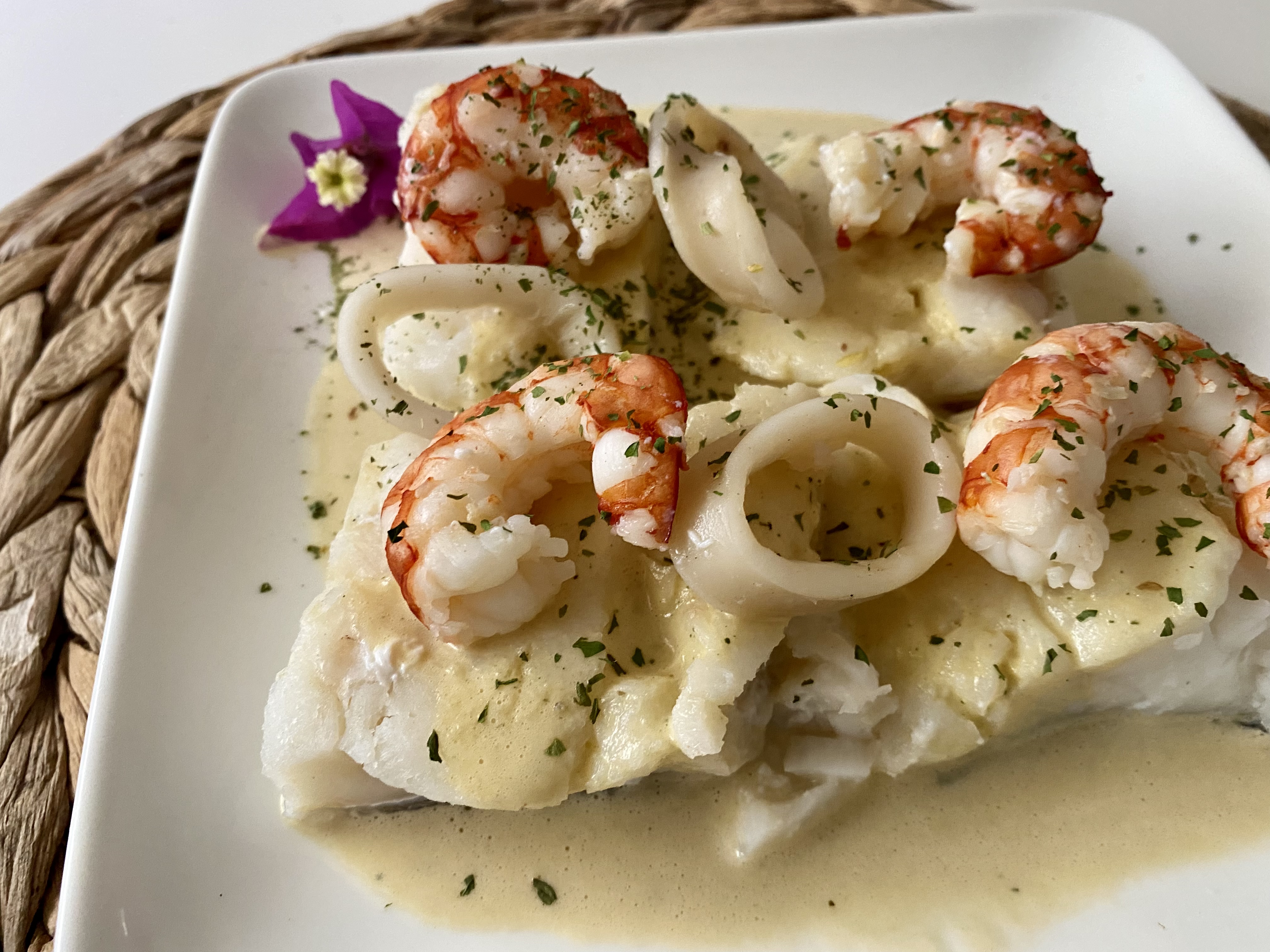 BACALAO CON GAMBONES Y ALMEJAS CON THERMOMIX