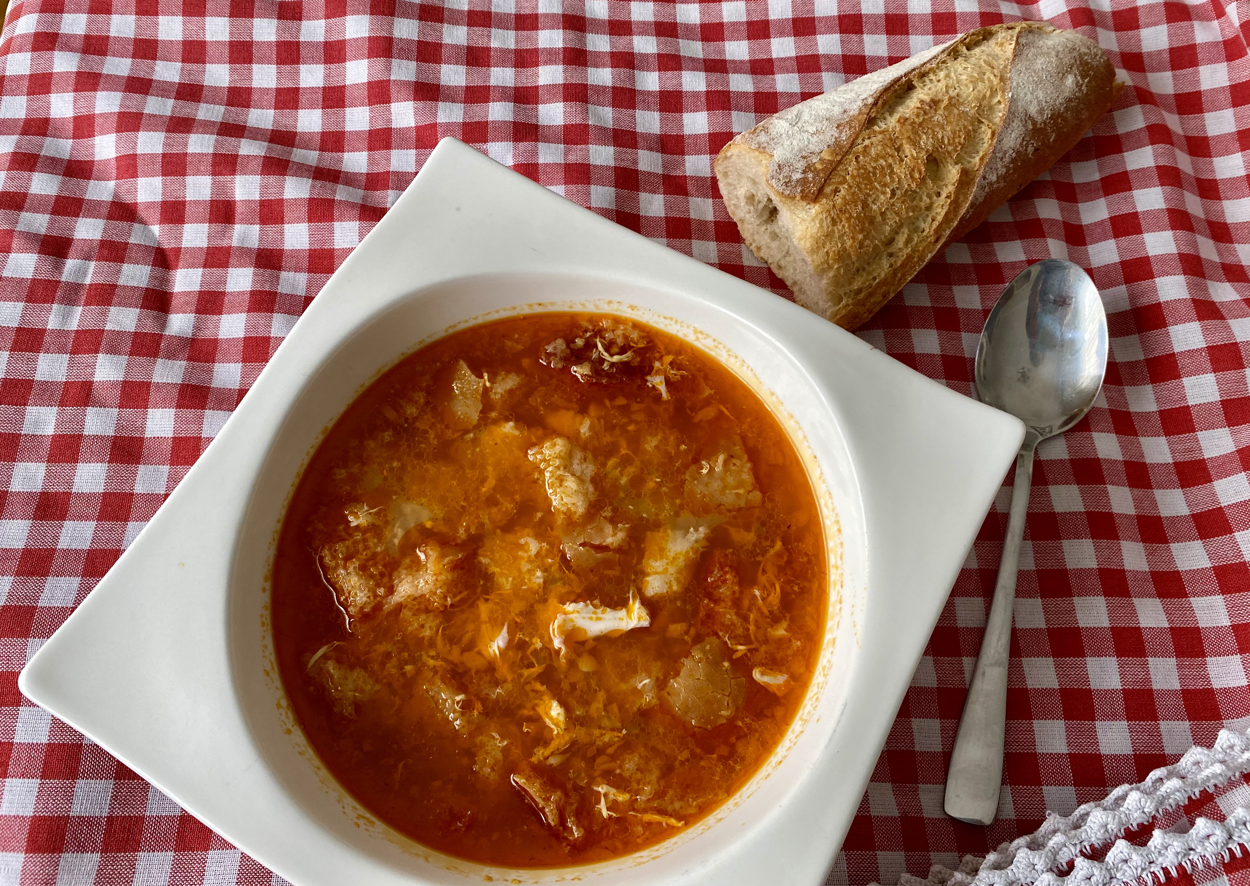 En días nublados parece que apetecen los platos de cuchara ? y teniendo pan duro y unas migas de bacalao , he por preparado esta rica sopa