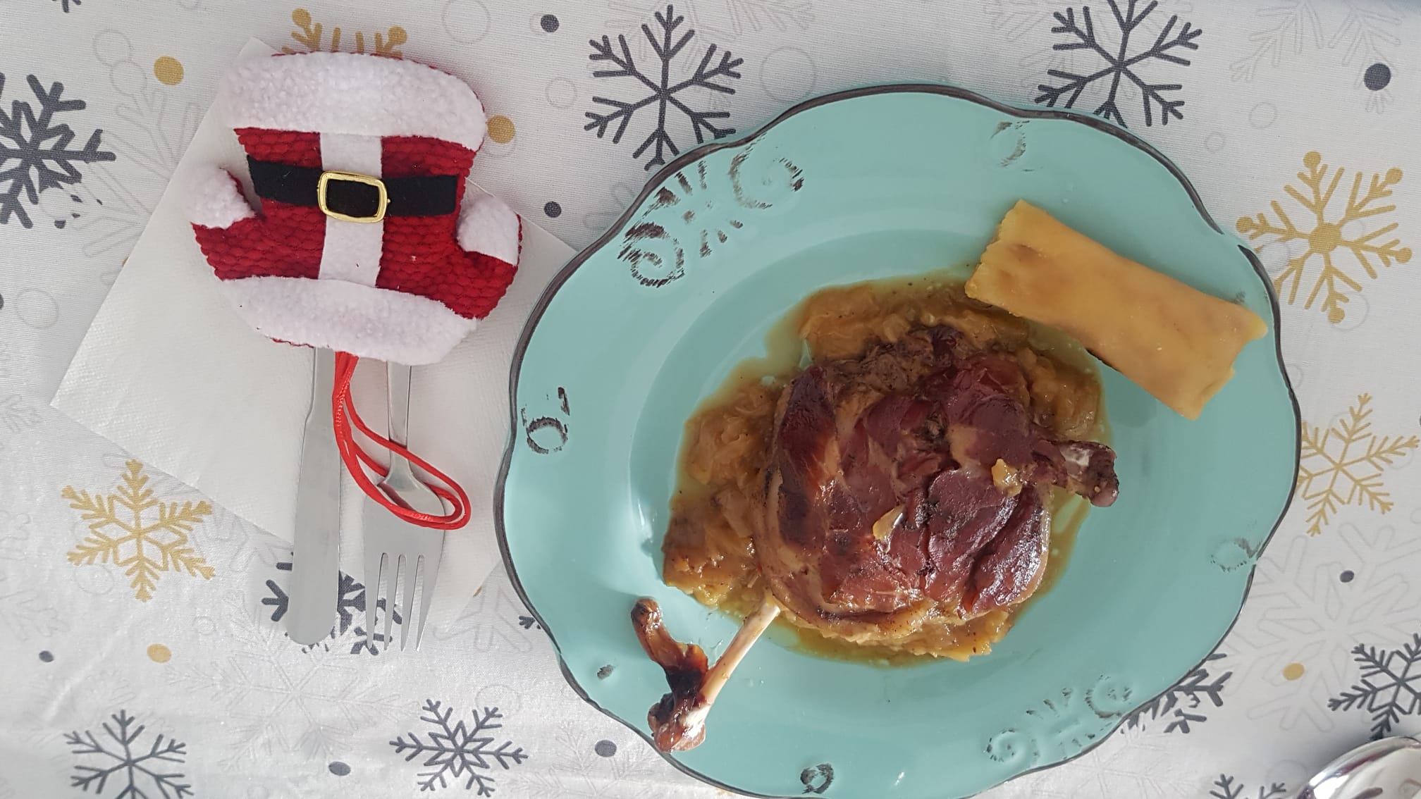 Confit de pato con cebolla caramelizada y canelon de foie (Al vacío) en Navidad