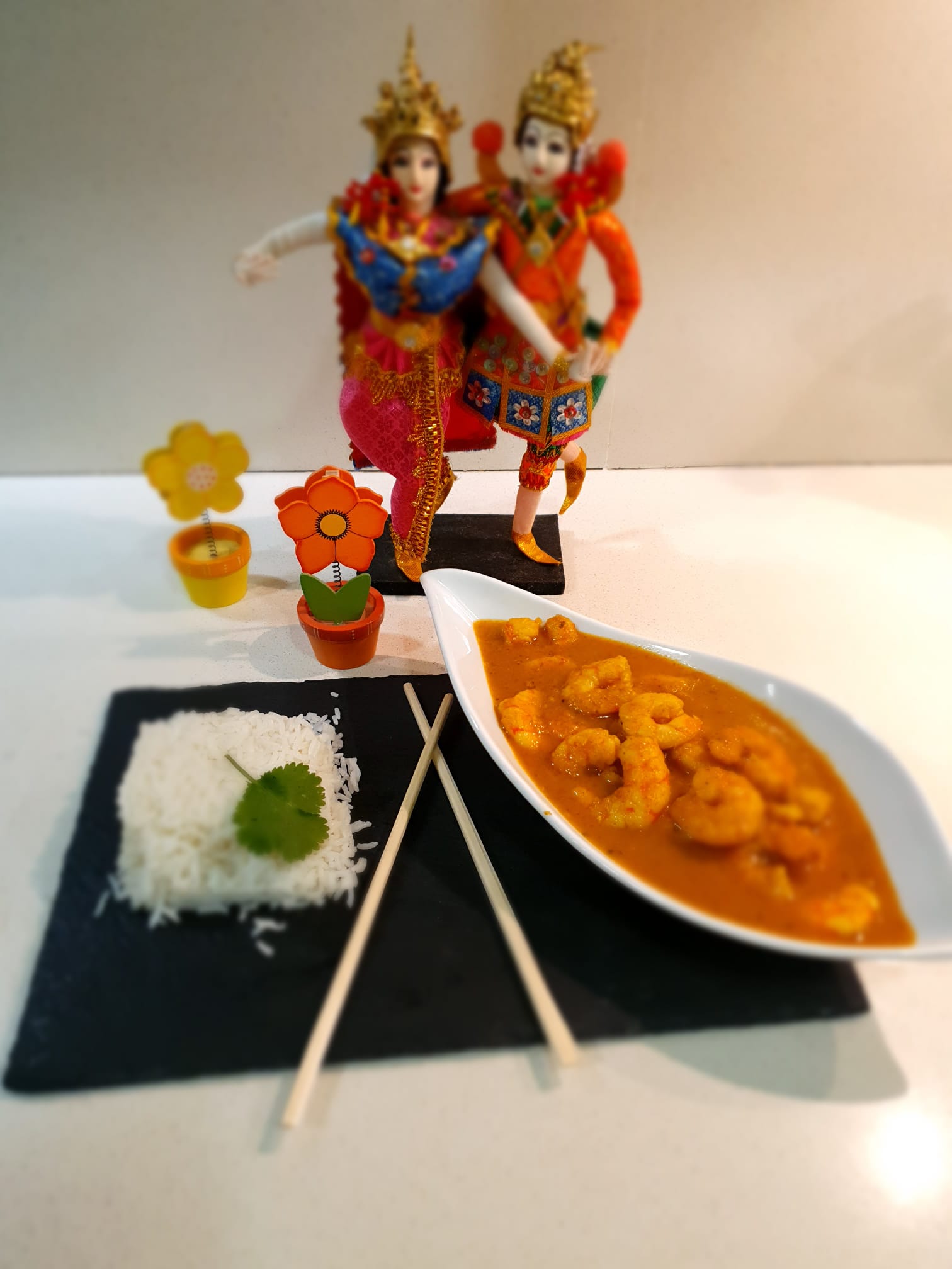 Curry de langostinos con arroz basmati